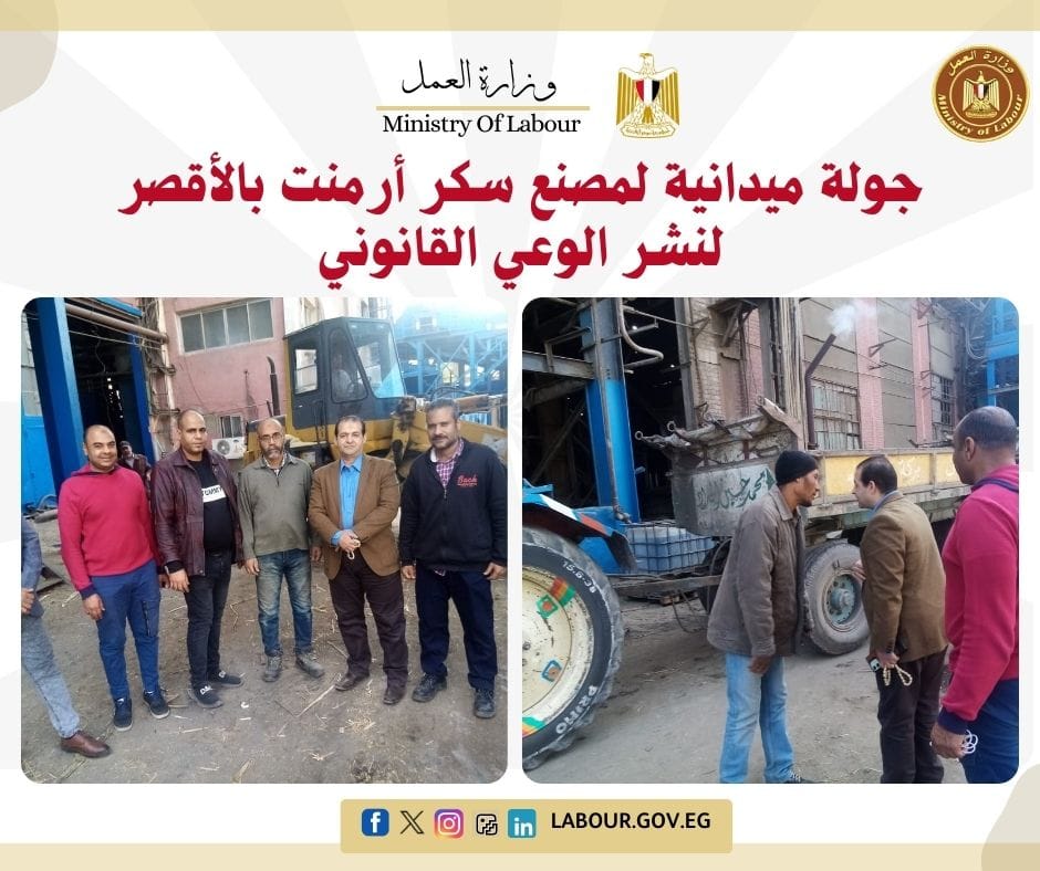 عقدت مديرية الأقصر لقاءً مع إدارة ولجنة نقابية بمصنع سكر أرمنت لشرح مواد المفاوضة الجماعية وصندوق إعانات الطوارئ.