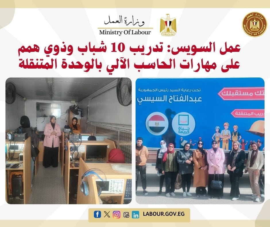 في السويس، تم تدريب 10 شباب من ذوي الهمم على مهارات الحاسب الآلي عبر الوحدة المتنقلة، حيث تابعت لمياء محمود، مدير المديرية، الدورة التدريبية التي تهدف لتأهيلهم لمتطلبات سوق العمل والتحول الرقمي، وأشرف على التدريب الأستاذ أشرف مغربي، بينما قامت الأستاذة نورهان إبراهيم بتدريب المشاركين لتعزيز فرصهم في الحصول على وظائف مناسبة.