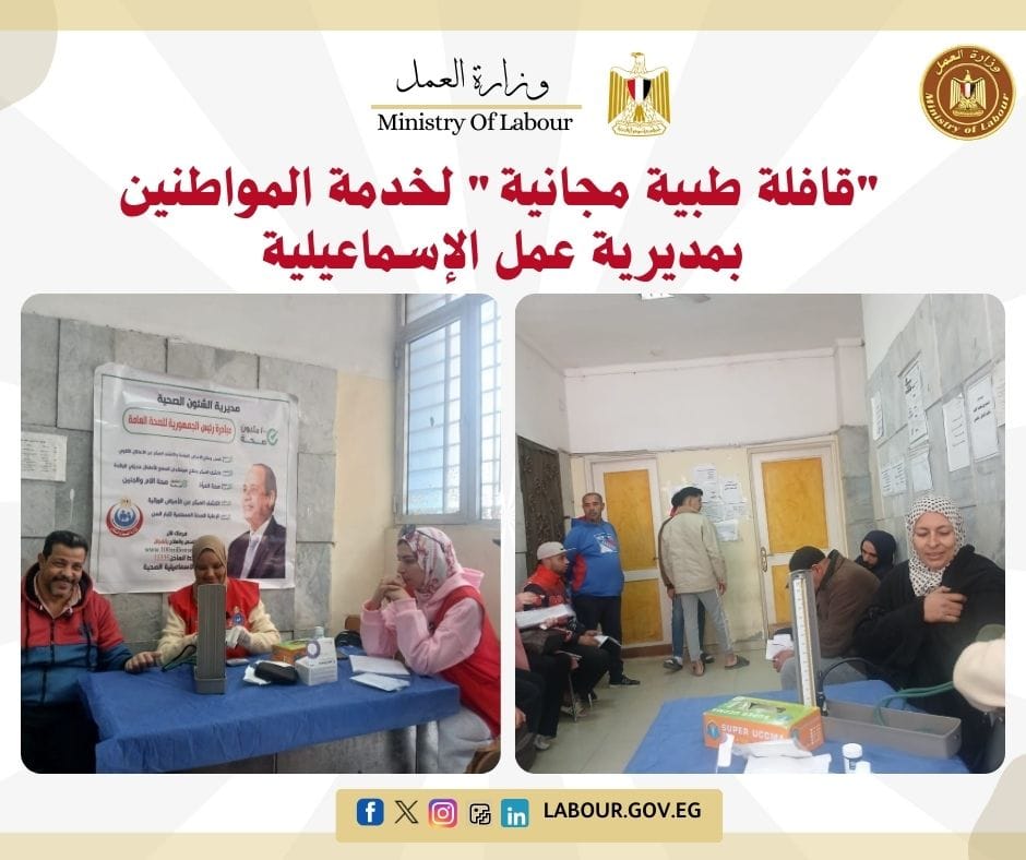 كما أطلقت مديرية الإسماعيلية قافلة طبية مجانية بالتعاون مع مديرية الصحة، لتقديم فحوصات مجانية للمواطنين المترددين على مكاتب المديرية.