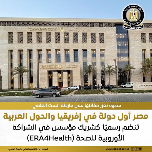 في خطوة مهمة تعزز من مكانة مصر في مجال البحث العلمي، أكدت أكاديمية البحث العلمي والتكنولوجيا انضمام مصر رسميًا كشريك كامل في الشراكة الأوروبية للصحة (ERA4Health). مصر أصبحت أول دولة إفريقية وعربية تنضم لهذا التحالف الكبير، الذي يضم 37 جهة تمويلية وبحثية من 24 دولة.