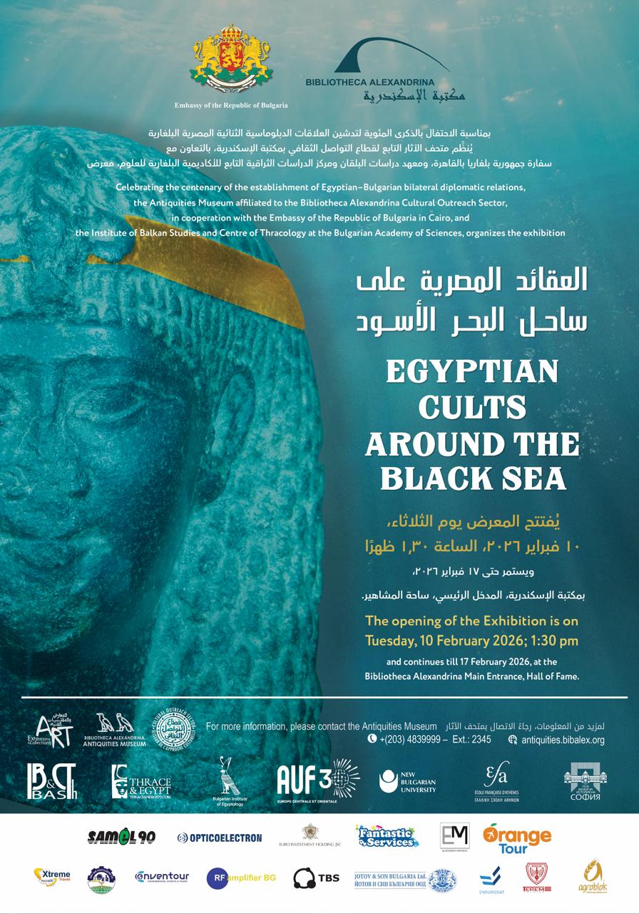 تستعد مكتبة الإسكندرية لاستقبال معرض مميز بعنوان «العقائد المصرية على ساحل البحر الأسود»، بالتعاون مع سفارة بلغاريا بالقاهرة ومعهد دراسات البلقان، ومركز الدراسات الثراقية. المعرض سيقام من 10 إلى 17 فبراير 2026 في ساحة المشاهير عند المدخل الرئيسي للمكتبة، ويأتي احتفالًا بمرور مئة عام على العلاقات الدبلوماسية بين مصر وبلغاريا.