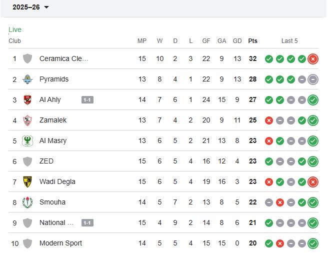 ترتيب الدوري المصري