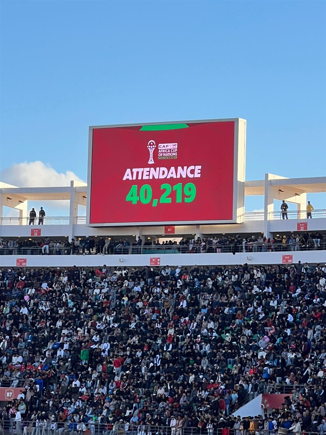 عدد 40219 مشجع يؤكد نجاح التنظيم الجماهيري للبطولة، وقدرة الملاعب المغربية على استيعاب العدد الكبير وتوفير أجواء آمنة وحماسية، وده شيء يحسب للبلد المستضيف اللي حول المباريات لمهرجانات كروية حقيقية.