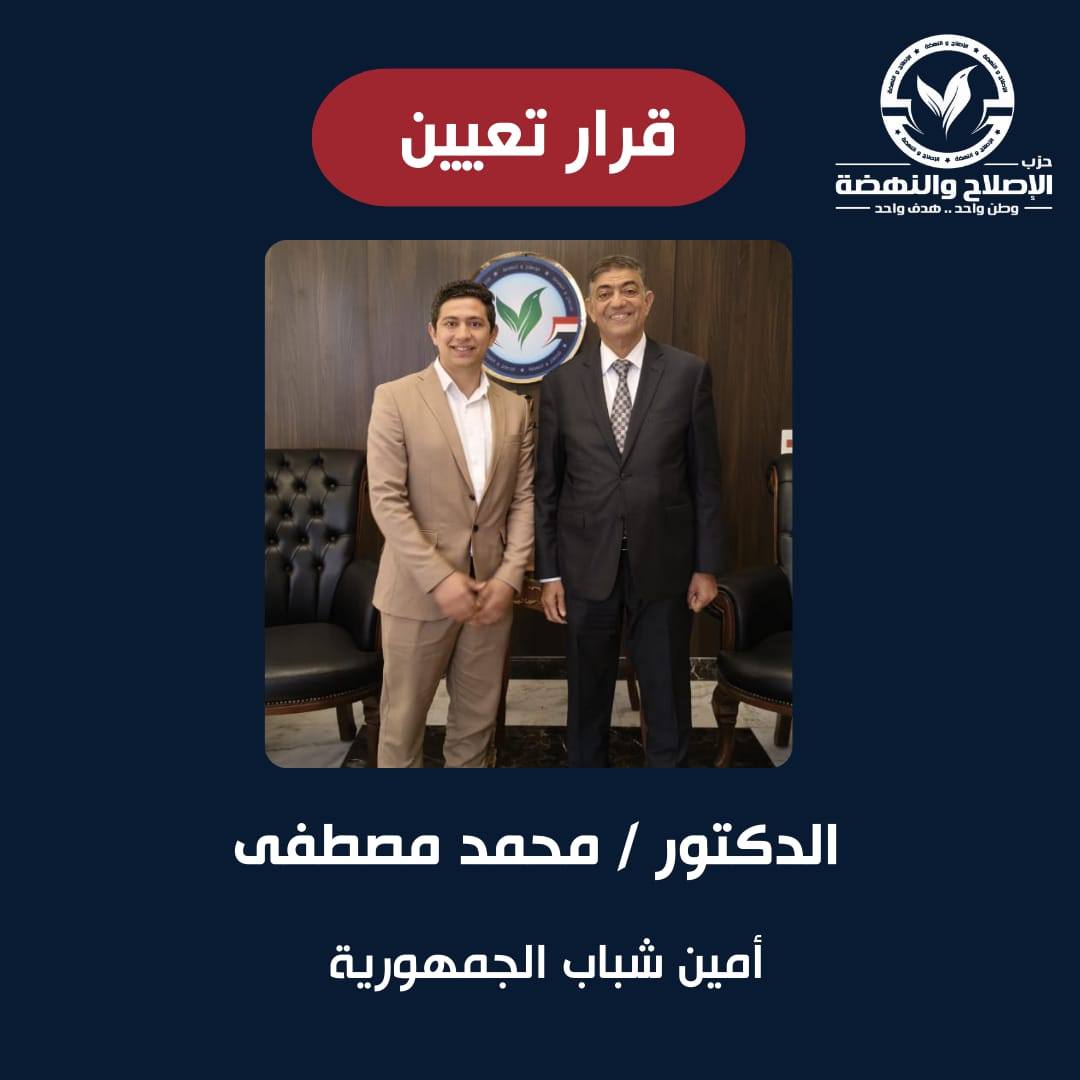 تعيين الدكتور محمد مصطفى أمينًا لشباب الجمهورية.