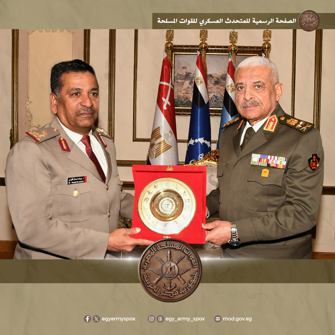 التقى الفريق أول عبد المجيد صقر، القائد العام للقوات المسلحة ووزير الدفاع والإنتاج الحربي، باللواء الركن يوسف دسمال مبارك الكوارى، رئيس الاتحاد العربي للرياضة العسكرية، بحضور الفريق أحمد خليفة، رئيس أركان حرب القوات المسلحة، في مقر الأمانة العامة لوزارة الدفاع.