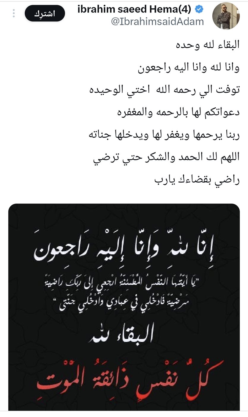 إبراهيم طلب من الجمهور الدعاء لأخته بالرحمة والمغفرة، وشكرهم على تعازيهم. وفي تغريدة مؤثرة، أعرب عن حزنه قائلاً: “البقاء لله وحده، أختي الوحيدة توفيت”.