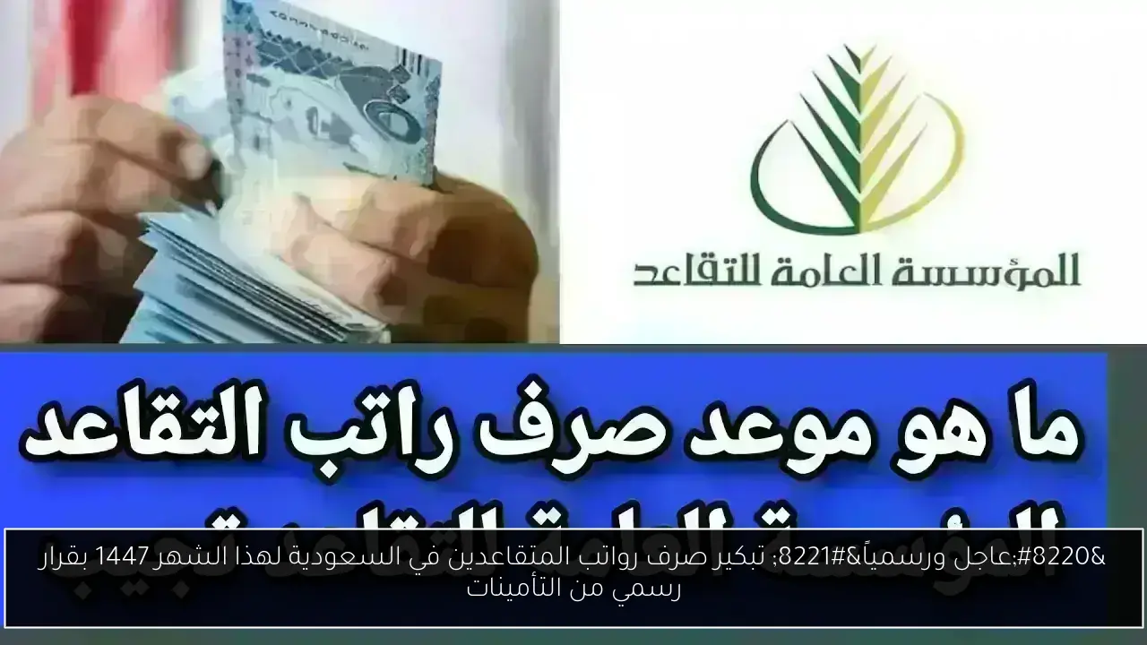 “عاجل ورسمياً” تبكير صرف رواتب المتقاعدين في السعودية لهذا الشهر 1447 بقرار رسمي من التأمينات