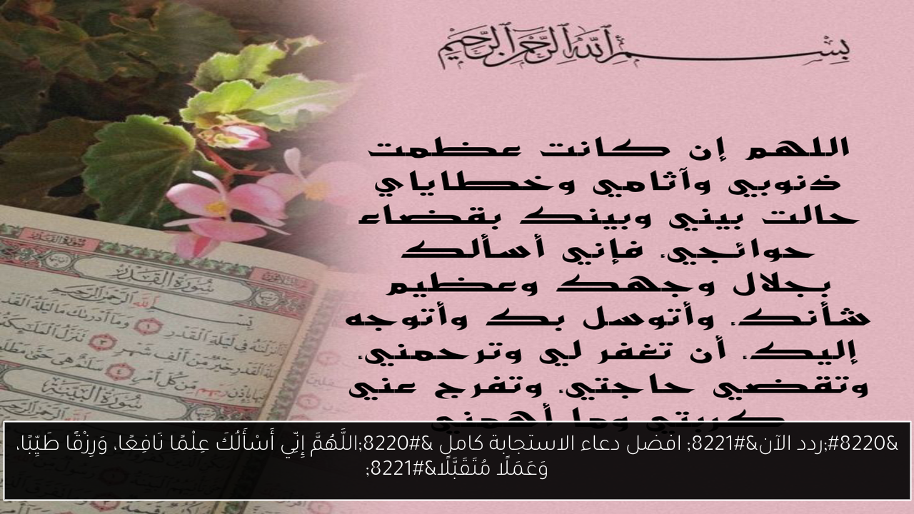 “ردد الآن” افضل دعاء الاستجابة كامل “اللَّهُمَّ إِنِّي أَسْأَلُكَ عِلْمًا نَافِعًا، وَرِزْقًا طَيِّبًا، وَعَمَلًا مُتَقَبَّلًا”