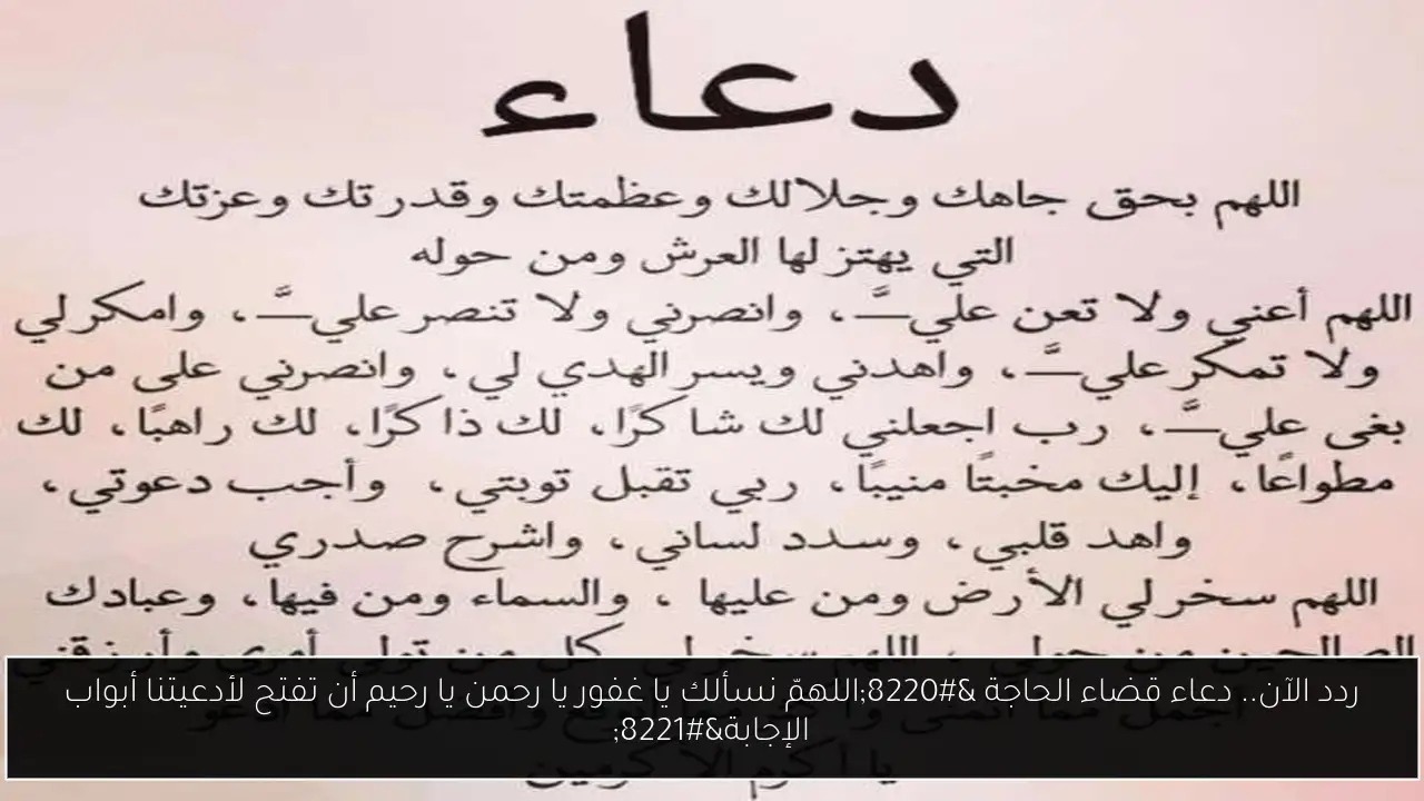 ردد الآن.. دعاء قضاء الحاجة “اللهمّ نسألك يا غفور يا رحمن يا رحيم أن تفتح لأدعيتنا أبواب الإجابة”