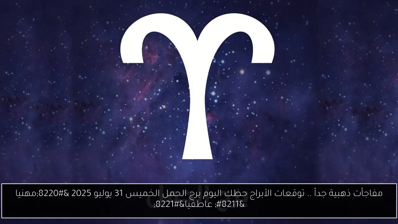 مفاجأت ذهبية جداً .. توقعات الأبراج حظك اليوم برج الحمل الخميس 31 يوليو 2025 “مهنيا – عاطفيا”