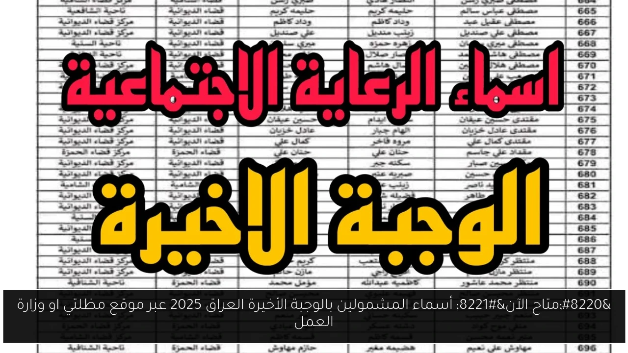 “متاح الآن” أسماء المشمولين بالوجبة الأخيرة العراق 2025 عبر موقع مظلتي او وزارة العمل