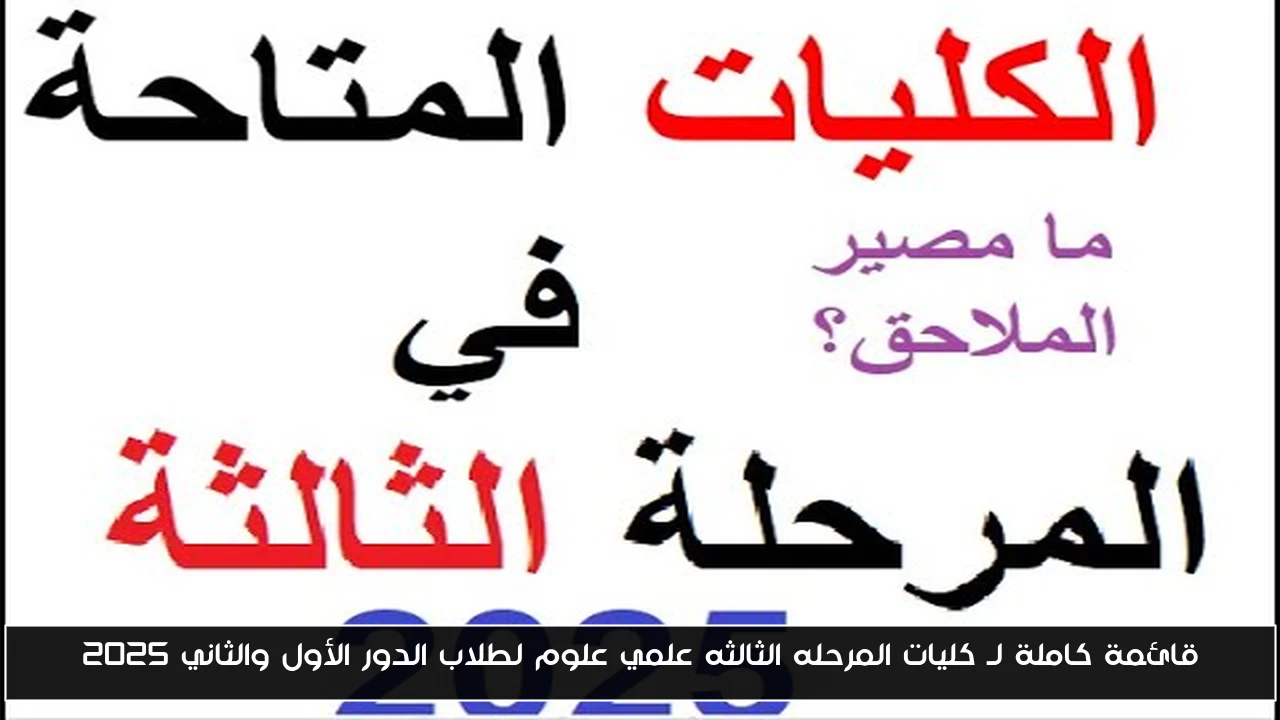 قائمة كاملة لـ كليات المرحله الثالثه علمي علوم لطلاب الدور الأول والثاني 2025