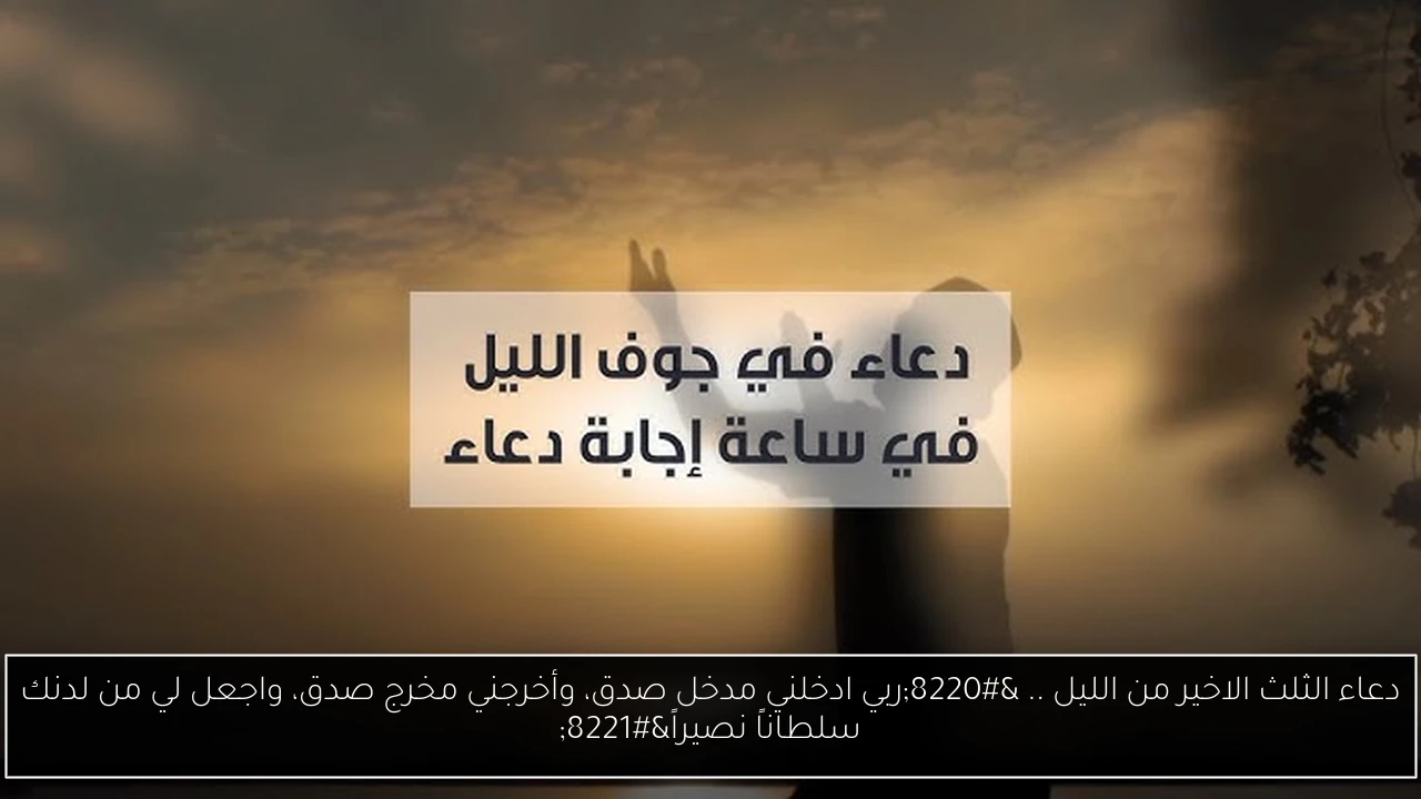 دعاء الثلث الاخير من الليل .. “ربي ادخلني مدخل صدق، وأخرجني مخرج صدق، واجعل لي من لدنك سلطاناً نصيراً”