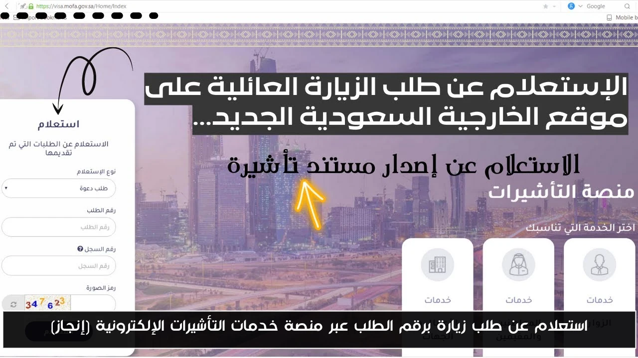 استعلام عن طلب زيارة برقم الطلب عبر منصة خدمات التأشيرات الإلكترونية (إنجاز)