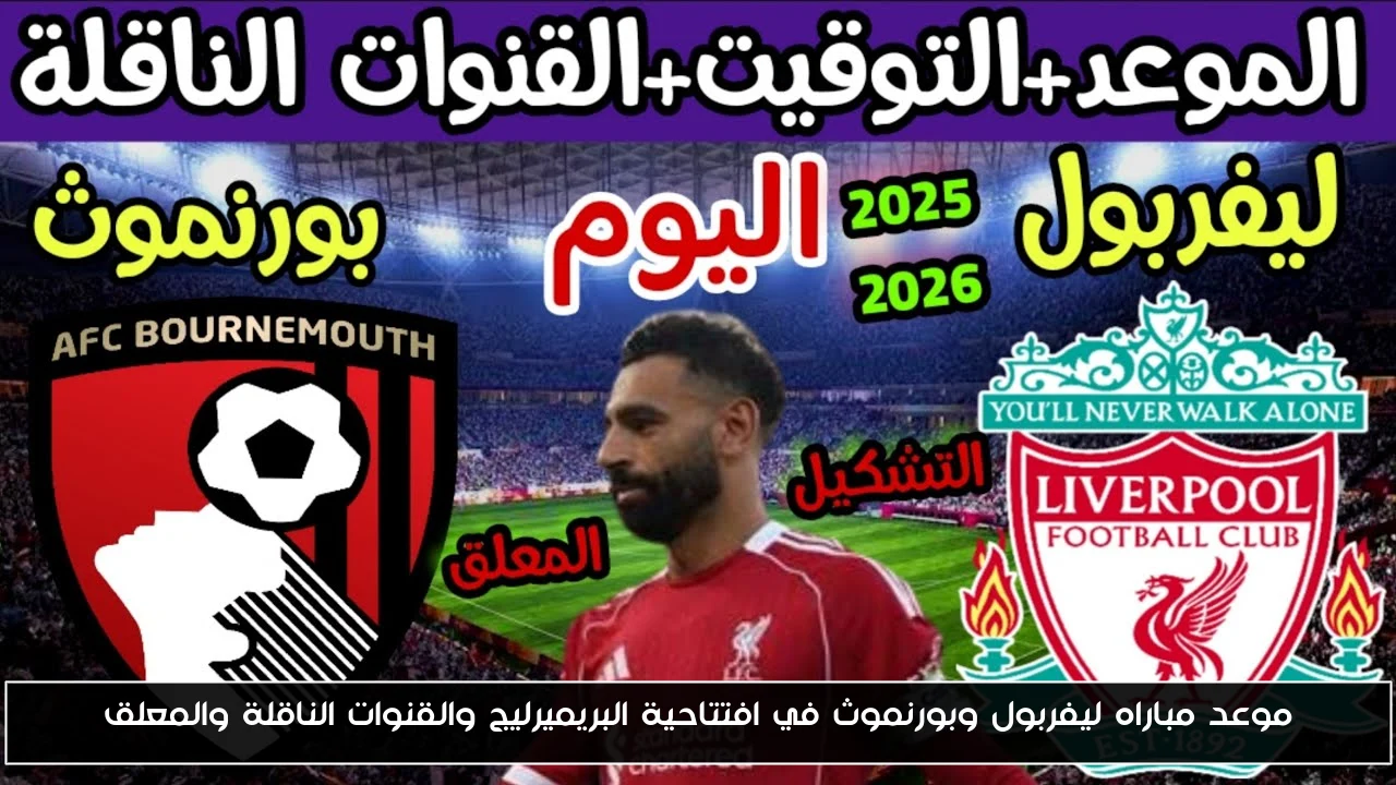 موعد مباراه ليفربول وبورنموث في افتتاحية البريميرليج والقنوات الناقلة والمعلق