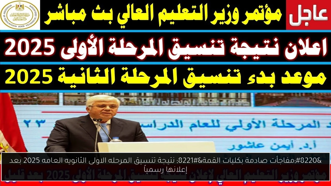 “مفاجأت صادمة بكليات القمة” نتيجة تنسيق المرحله الاولى الثانويه العامه 2025 بعد إعلانها رسمياً
