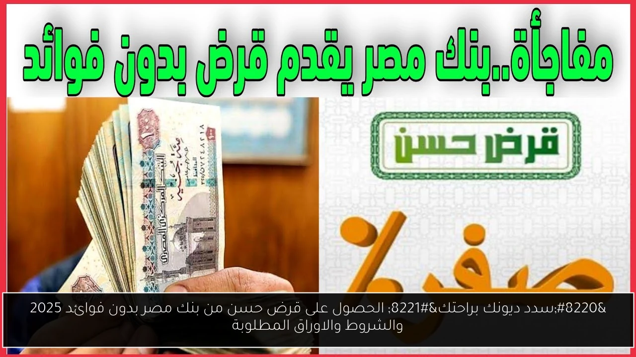 “سدد ديونك براحتك” الحصول على قرض حسن من بنك مصر بدون فوائد 2025 والشروط والاوراق المطلوبة