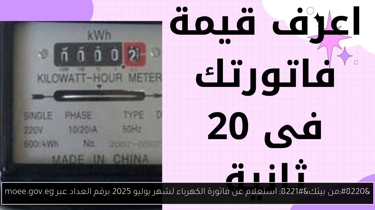 “من بيتك” استعلام عن فاتورة الكهرباء لشهر يوليو 2025 برقم العداد عبر moee.gov.eg