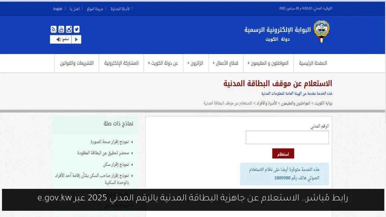 رابط مُباشر.. الاستعلام عن جاهزية البطاقة المدنية بالرقم المدني 2025 عبر e.gov.kw