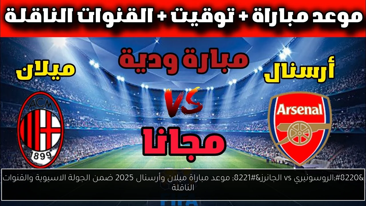 “الروسونيري vs الجانرز” موعد مباراة ميلان وأرسنال 2025 ضمن الجولة الاسيوية والقنوات الناقلة