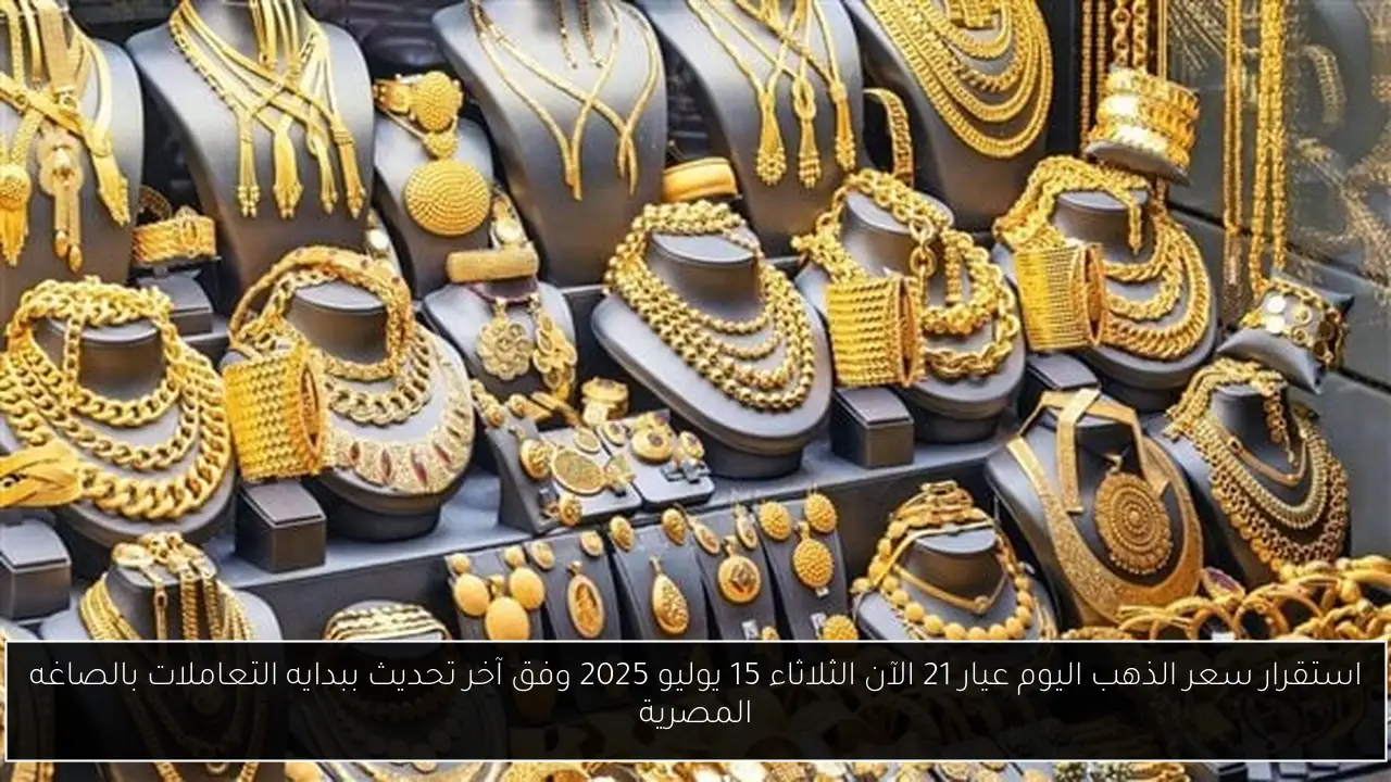 استقرار سعر الذهب اليوم عيار 21 الآن الثلاثاء 15 يوليو 2025 وفق آخر تحديث ببدايه التعاملات بالصاغه المصرية