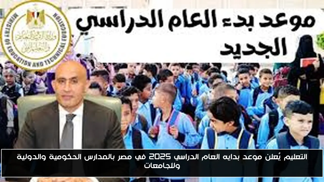 التعليم يُعلن موعد بدايه العام الدراسي 2025 في مصر بالمدارس الحكومية والدولية وللجامعات
