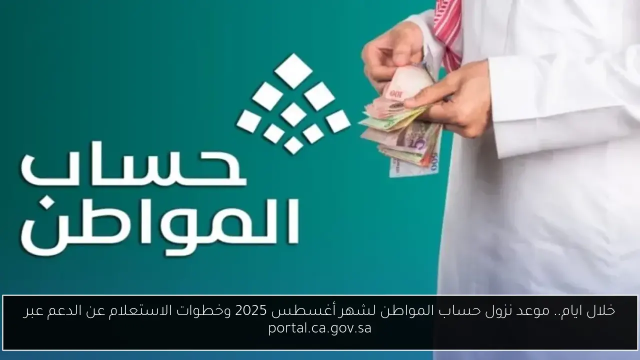 خلال ايام.. موعد نزول حساب المواطن لشهر أغسطس 2025 وخطوات الاستعلام عن الدعم عبر portal.ca.gov.sa