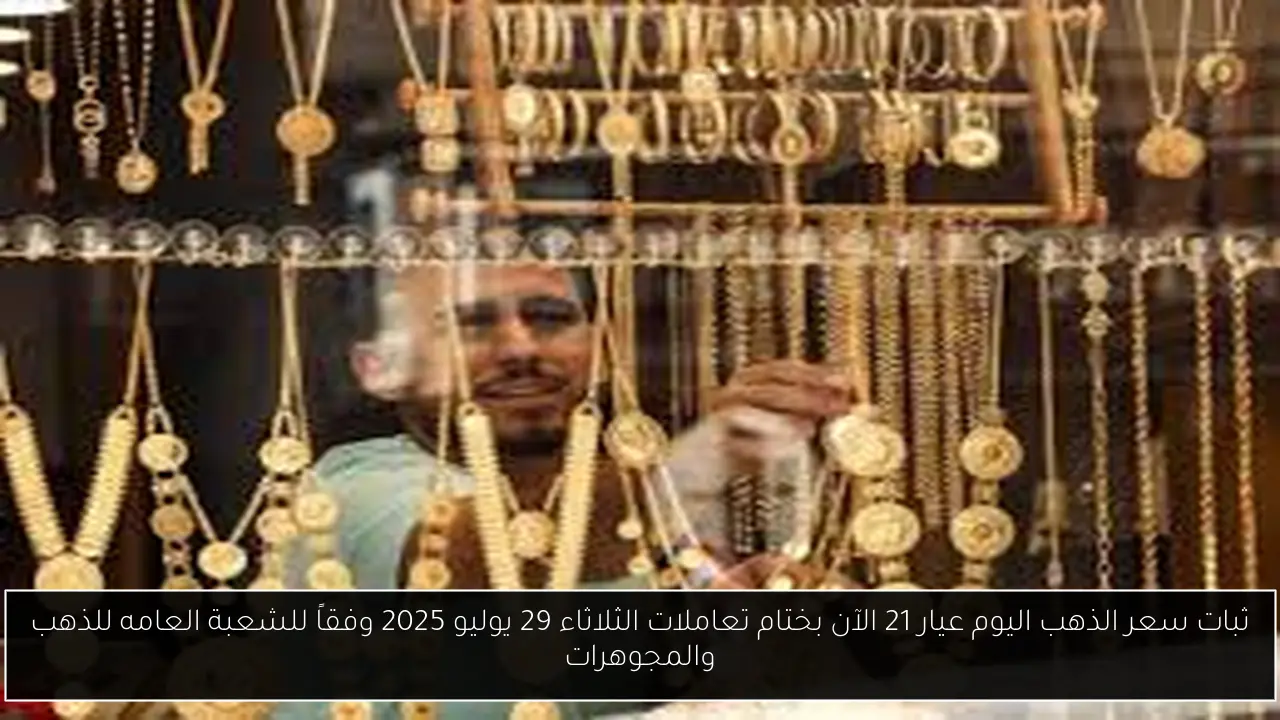 ثبات سعر الذهب اليوم عيار 21 الآن بختام تعاملات الثلاثاء 29 يوليو 2025 وفقاً للشعبة العامه للذهب والمجوهرات