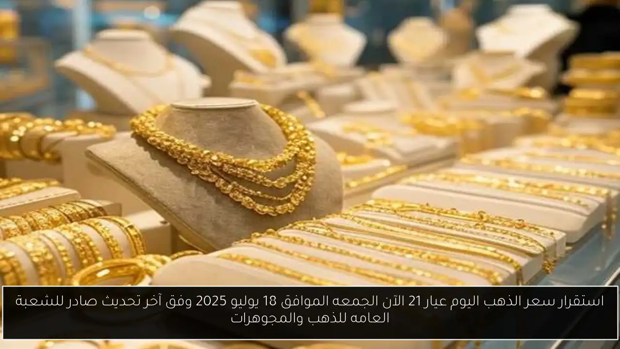 استقرار سعر الذهب اليوم عيار 21 الآن الجمعه الموافق 18 يوليو 2025 وفق آخر تحديث صادر للشعبة العامه للذهب والمجوهرات