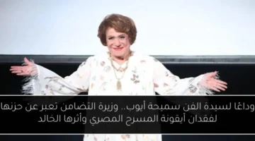 وداعًا لسيدة الفن سميحة أيوب.. وزيرة التضامن تعبر عن حزنها لفقدان أيقونة المسرح المصري وأثرها الخالد