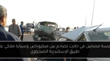خمسة مصابين في حادث تصادم بين ميكروباص وسيارة ملاكي على طريق الإسكندرية الصحراوي