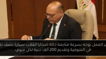 وزير العمل يوجه بسرعة متابعة حالة ضحايا انقلاب سيارة نصف نقل في المنوفية وتقديم 200 ألف جنيه لكل متوفٍ