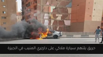 حريق يلتهم سيارة ملاكي على دائري المنيب في الجيزة