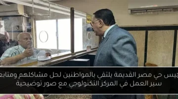 رئيس حي مصر القديمة يلتقي بالمواطنين لحل مشاكلهم ومتابعة سير العمل في المركز التكنولوجي مع صور توضيحية