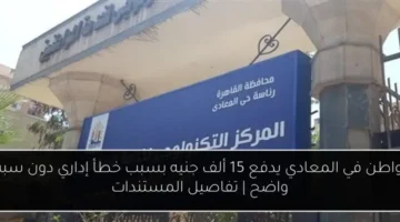 مواطن في المعادي يدفع 15 ألف جنيه بسبب خطأ إداري دون سبب واضح | تفاصيل المستندات