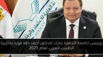 رئيس جامعة القاهرة يبارك للدكتور أحمد طه فوزه بجائزة الطبيب العربي لعام 2025