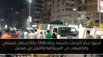 الجيزة تتخذ إجراءات حاسمة بإزالة 1200 حالة إشغال للمقاهي والكافيهات في المريوطية واللبيني في فيصل