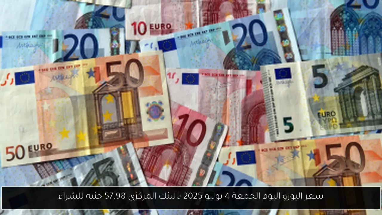 سعر اليورو اليوم الجمعة 4 يوليو 2025 بالبنك المركزي 57.98 جنيه للشراء