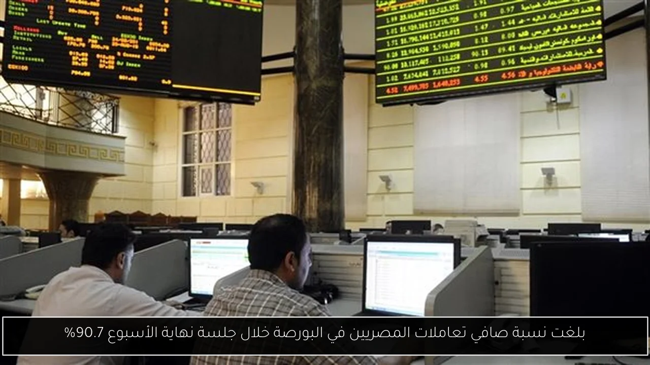 بلغت نسبة صافي تعاملات المصريين في البورصة خلال جلسة نهاية الأسبوع 90.7%
