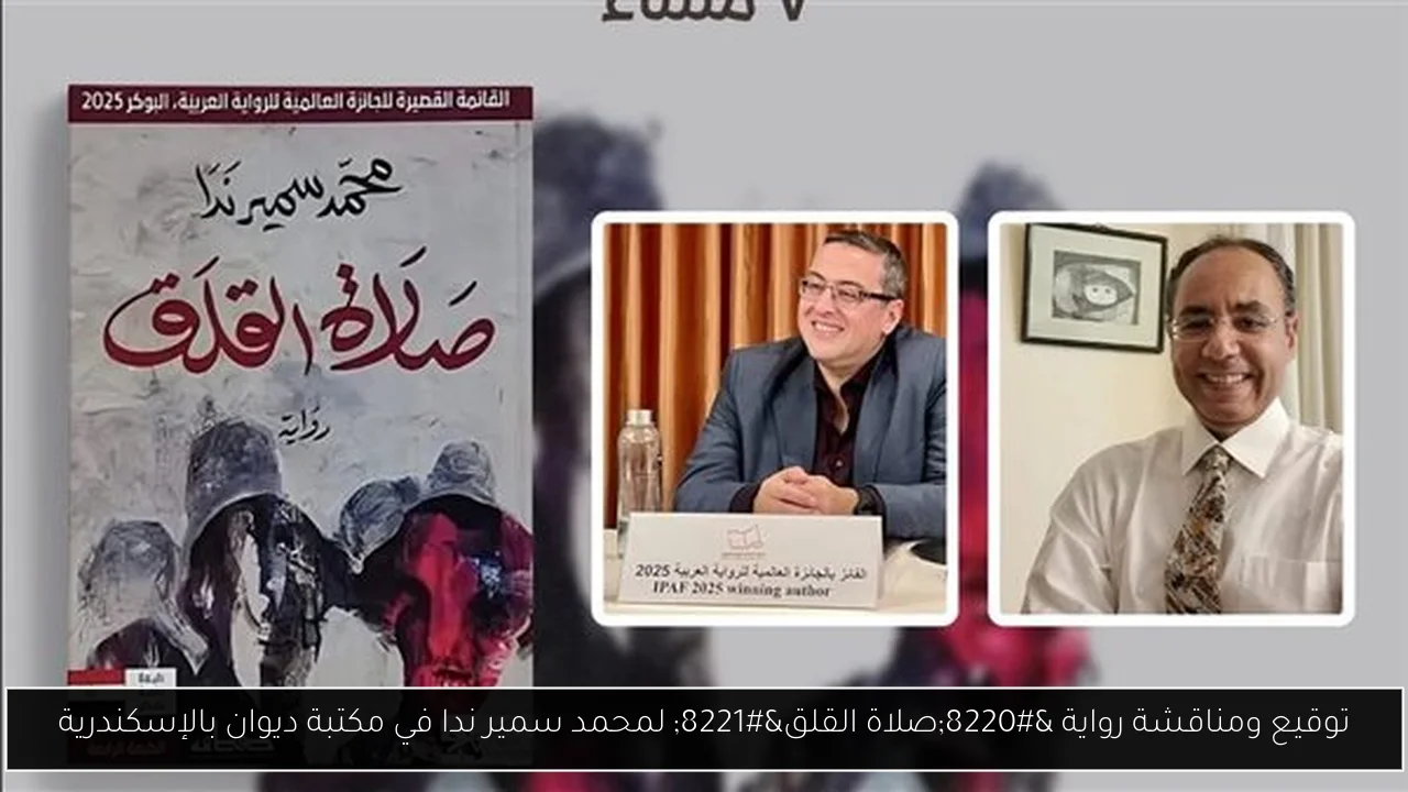 توقيع ومناقشة رواية “صلاة القلق” لمحمد سمير ندا في مكتبة ديوان بالإسكندرية
