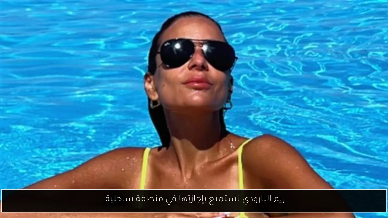 ريم البارودي تستمتع بإجازتها في منطقة ساحلية.