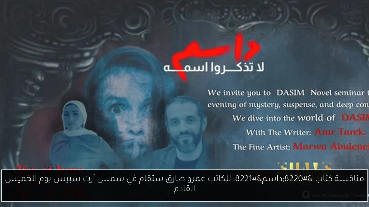 مناقشة كتاب “داسم” للكاتب عمرو طارق ستقام في شمس آرت سبيس يوم الخميس القادم