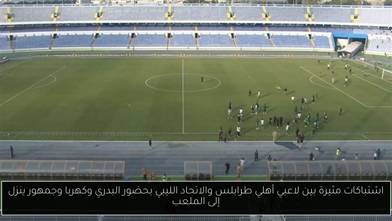 اشتباكات مثيرة بين لاعبي أهلي طرابلس والاتحاد الليبي بحضور البدري وكهربا وجمهور ينزل إلى الملعب