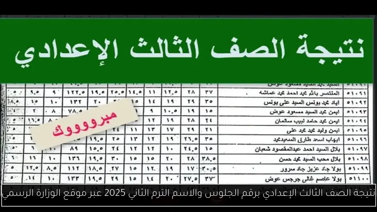 نتيجة الصف الثالث الإعدادي برقم الجلوس والاسم الترم الثاني 2025 عبر موقع الوزارة الرسمي