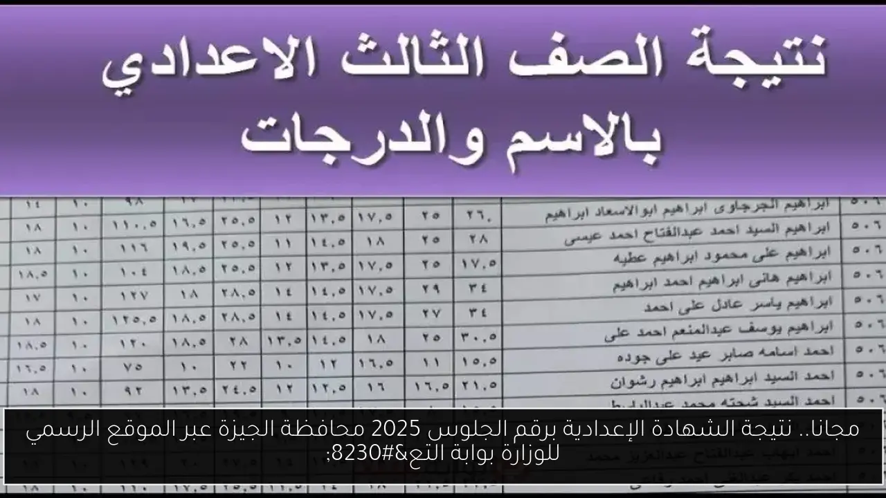 مجانا.. نتيجة الشهادة الإعدادية برقم الجلوس 2025 محافظة الجيزة عبر الموقع الرسمي للوزارة بوابة التع…