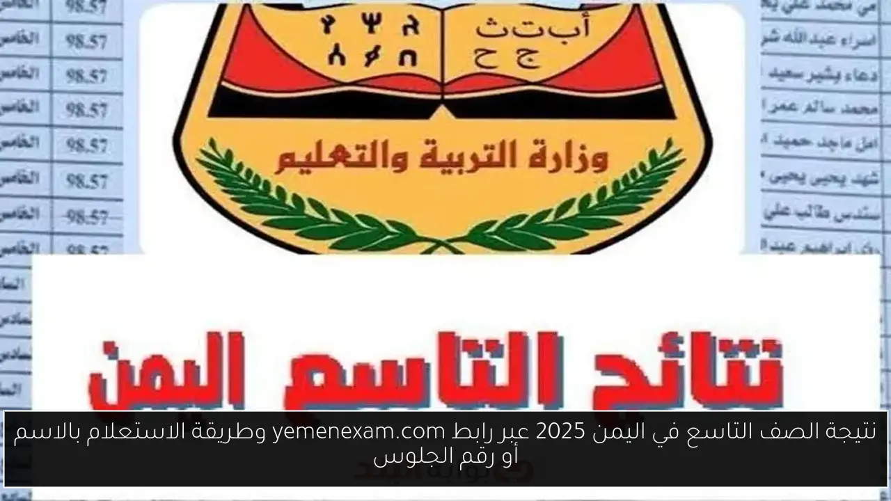نتيجة الصف التاسع في اليمن 2025 عبر رابط yemenexam.com وطريقة الاستعلام بالاسم أو رقم الجلوس