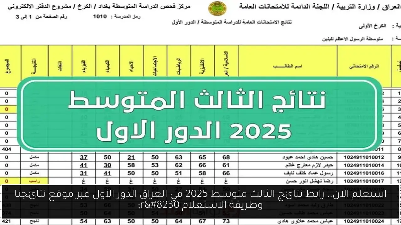 استعلم الآن.. رابط نتائج الثالث متوسط 2025 في العراق الدور الأول عبر موقع نتائجنا وطريقة الاستعلام r…