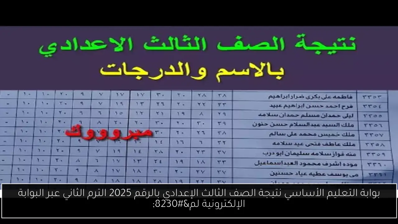 بوابة التعليم الأساسي نتيجة الصف الثالث الإعدادي بالرقم 2025 الترم الثاني عبر البوابة الإلكترونية لم…