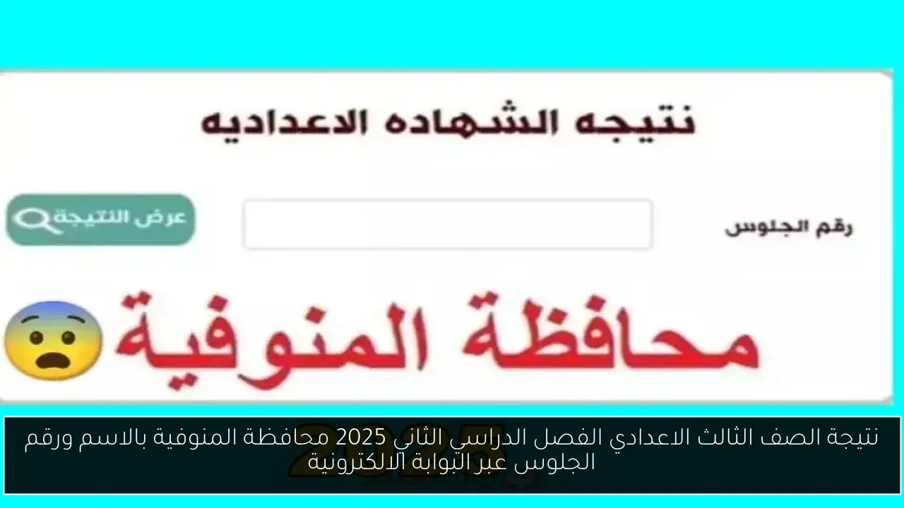 نتيجة الصف الثالث الاعدادي الفصل الدراسي الثاني 2025 محافظة المنوفية بالاسم ورقم الجلوس عبر البوابة الالكترونية