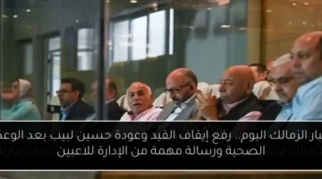 أخبار الزمالك اليوم.. رفع إيقاف القيد وعودة حسين لبيب بعد الوعكة الصحية ورسالة مهمة من الإدارة للاعبين